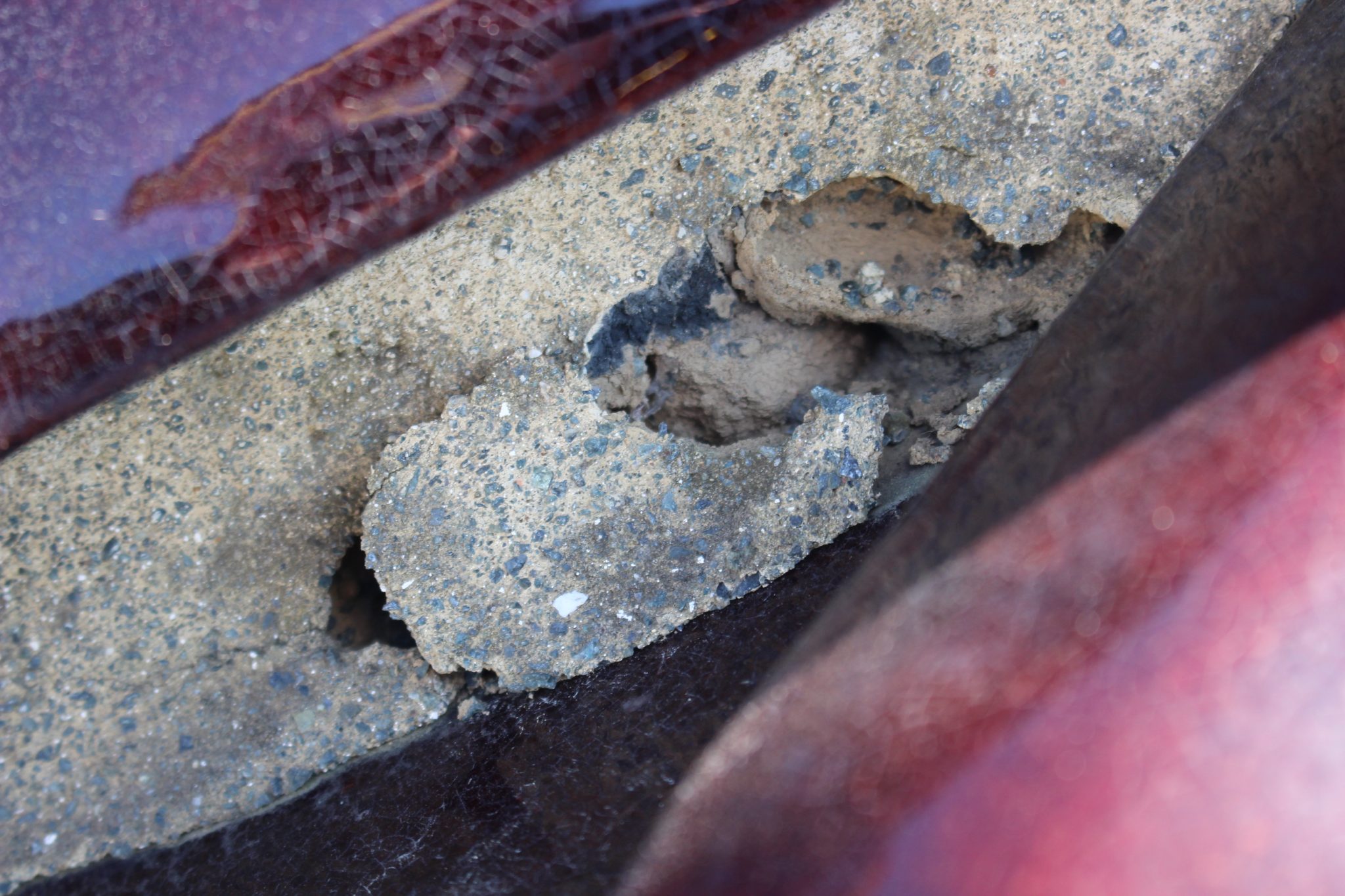 ↑一部破損が確認できます。補修で済む状態でしたが、欠落したカスが雨どいに詰まり、破損や歪みの原因になるのです。