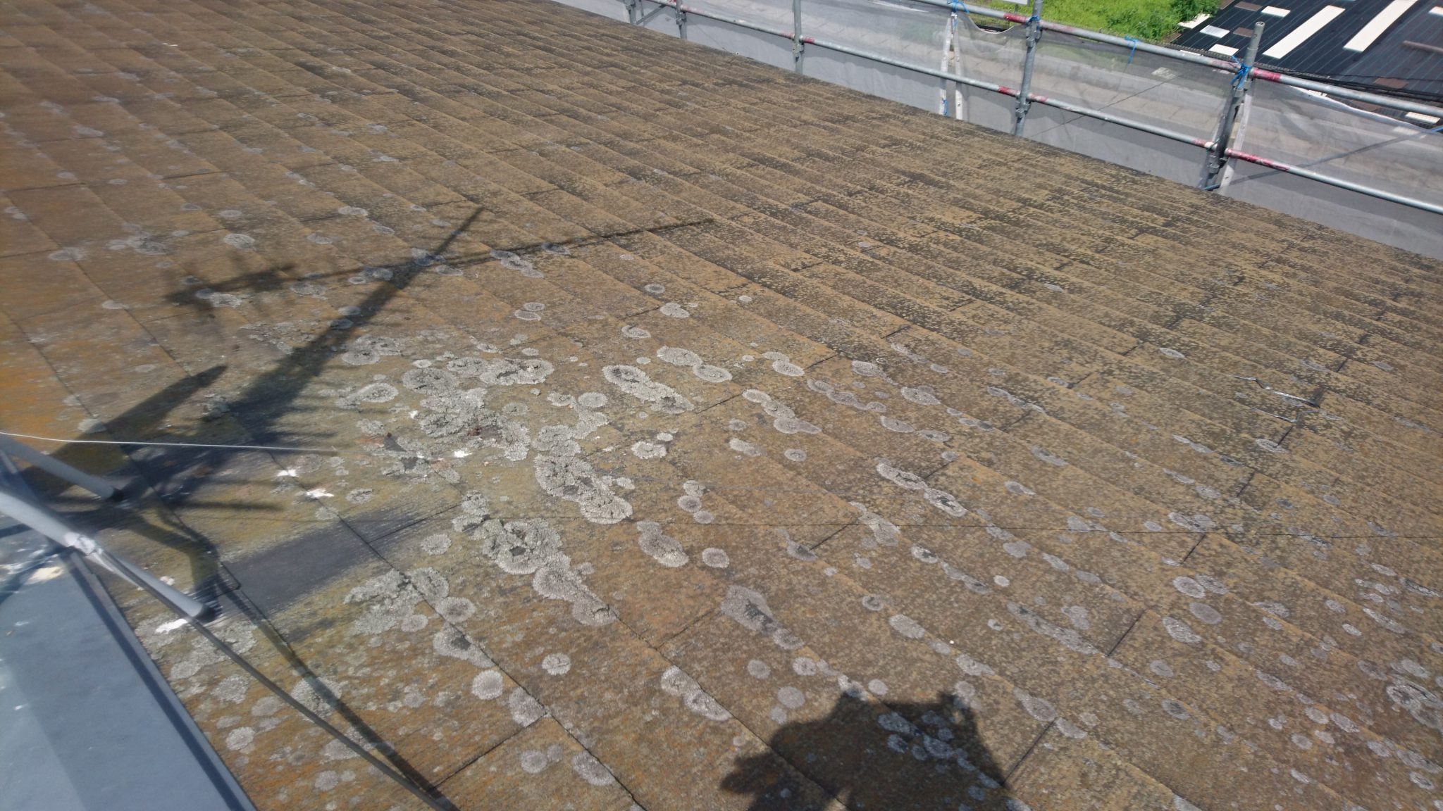 屋根には苔がびっしり生えています。