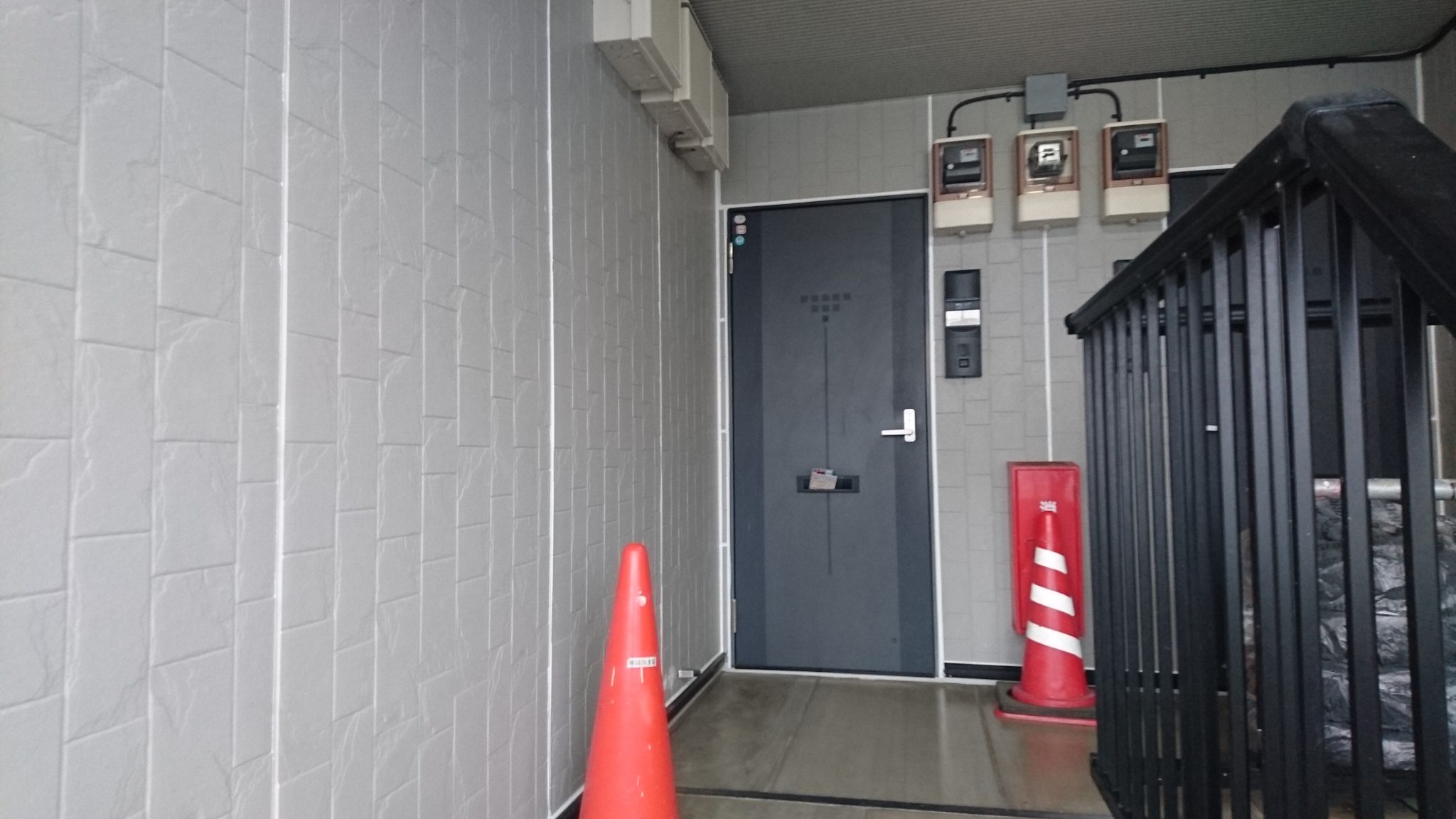 事前に住居者様にお知らせをしておいたので、階段室のシーリング充填作業もトラブルなく、スムーズに行うことができました(^^)d