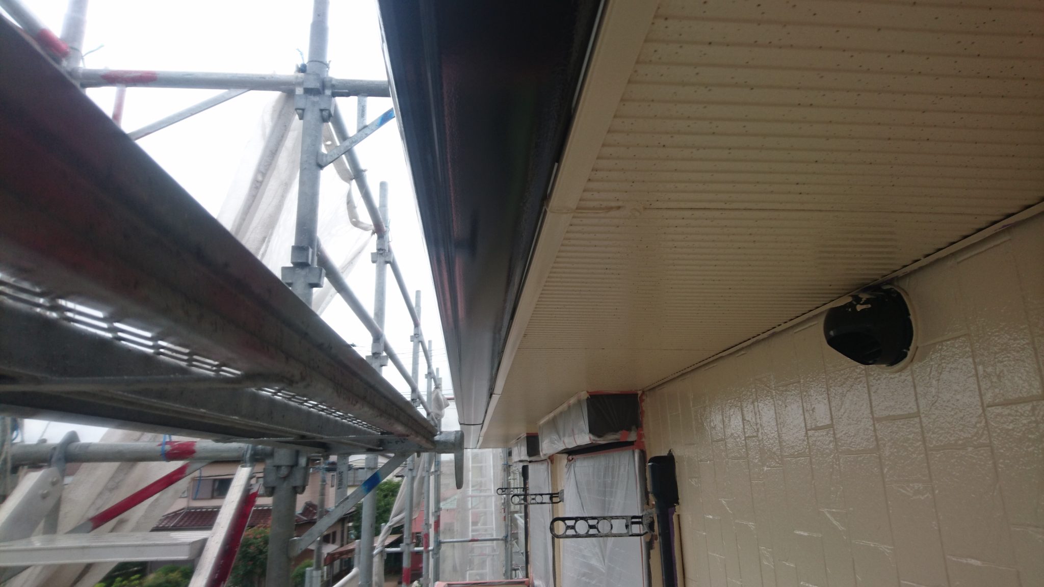 本日は、軒天・雨樋の上塗り作業を行いました!