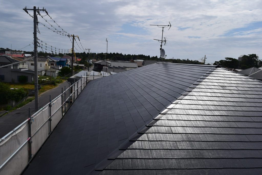本日は大洗町のアパートの現場に来ています、先日写真に撮れなかった屋根の写真を撮ってきました。