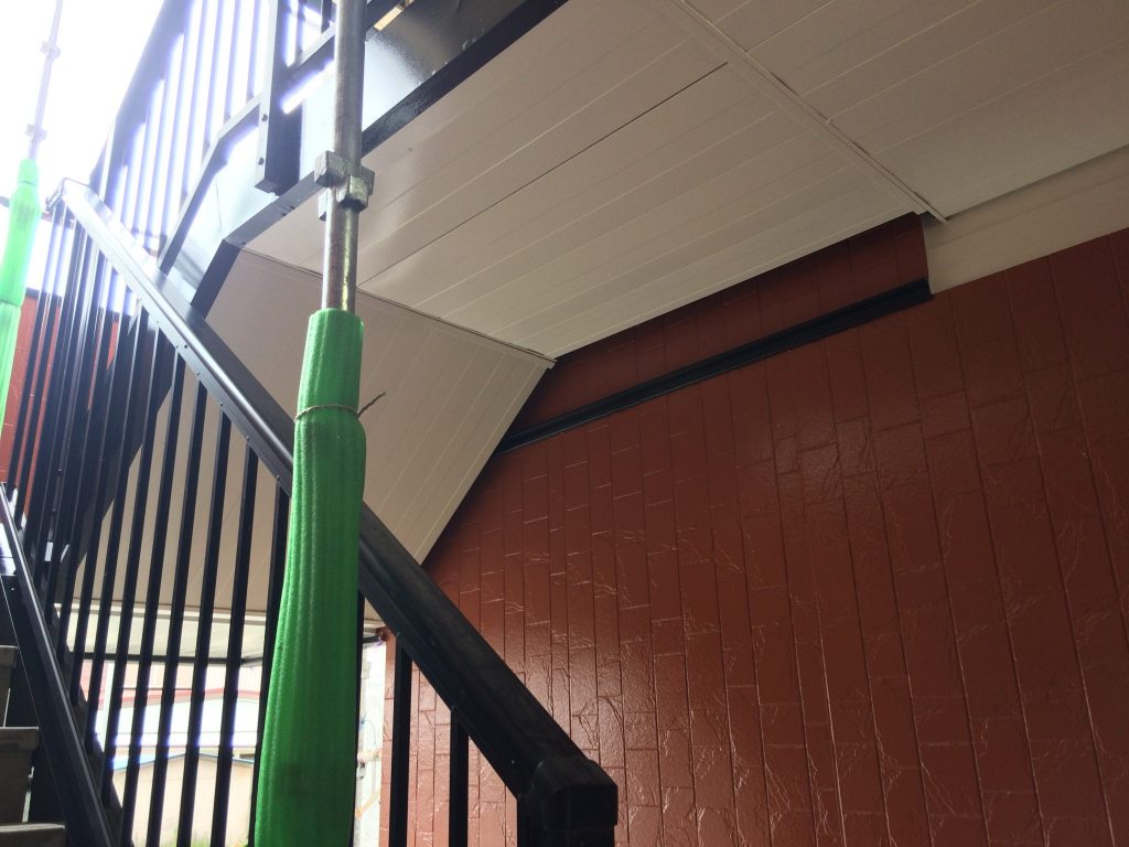 昨日に引き続き階段室内の塗装作業、今日は仕上げになります!