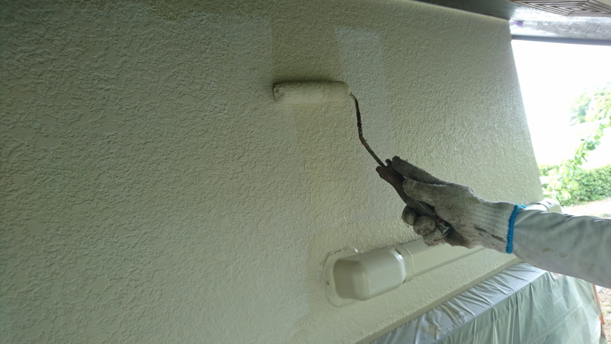 ローラーで塗装する前に、天井側とサッシ回りを刷毛で塗装してからローラーで塗っていきます❗