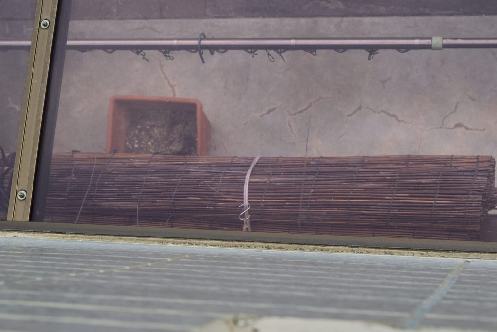 こちらは、2階ベランダの中から撮影したテラスの写真になります、経年劣化が進みヒビが何ヵ所も確認できました。紫外線や熱によって割れや変形が起きています