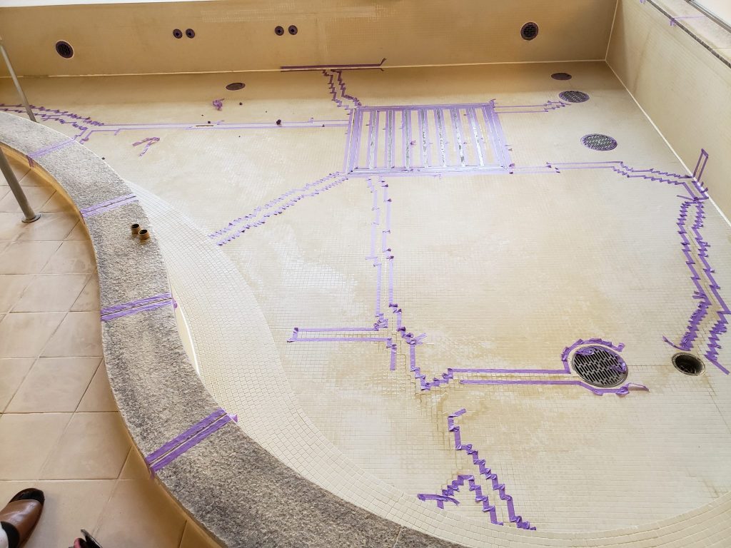 本日は、温泉施設のシーリング撤去・マスキング養生を行いました。