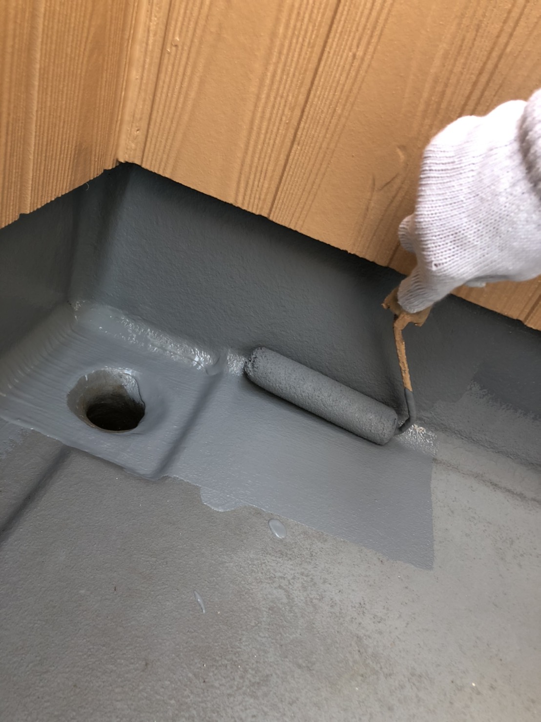 FRP防水層が劣化している場合は、高耐久ウレタン防水工事を行います。