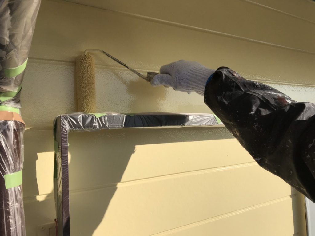 表面が平らな外壁材ですので、塗り継ぎが出ないように丁寧に塗り進めます。