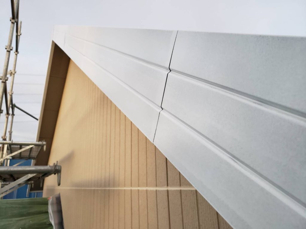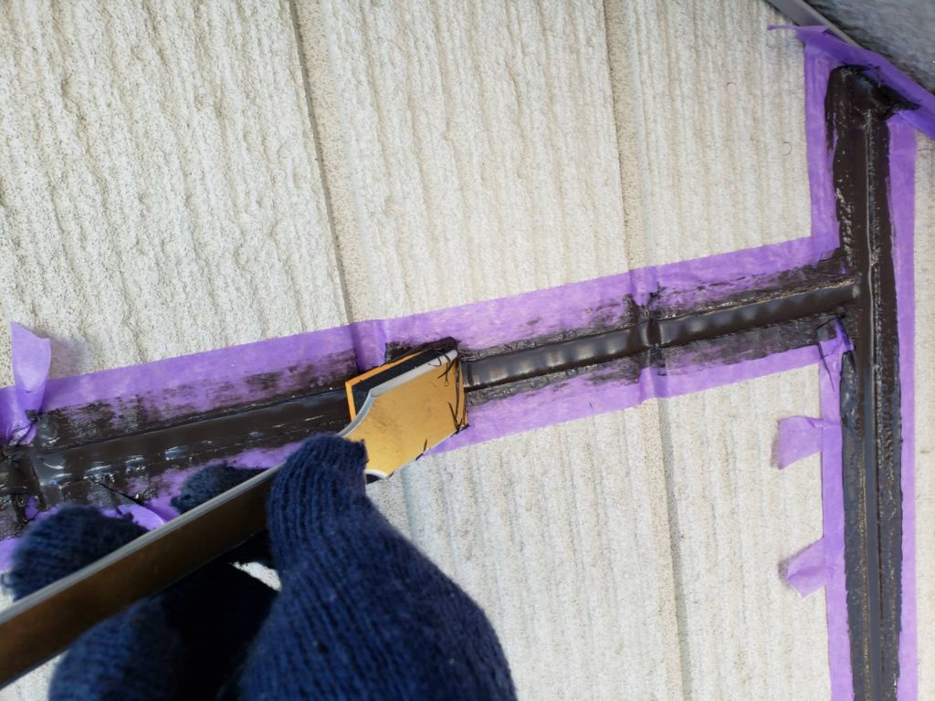 表面に塩ビ処理された鋼製破風板ですので、専用の下塗り材を塗装していきます。