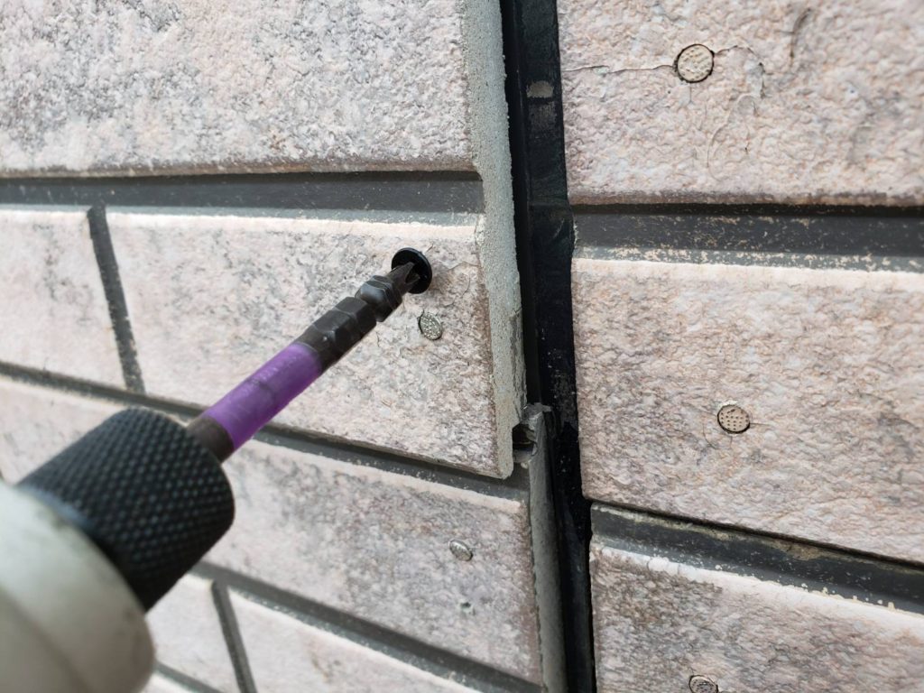 また、雨水の侵入や地震の影響などでサイディング材が浮いている場合は、ビス等で再度留める作業も行います。