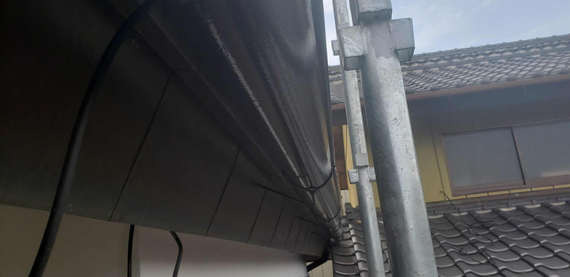 雨樋の上塗りや養生撤去等を行って本日の作業は終了なります。