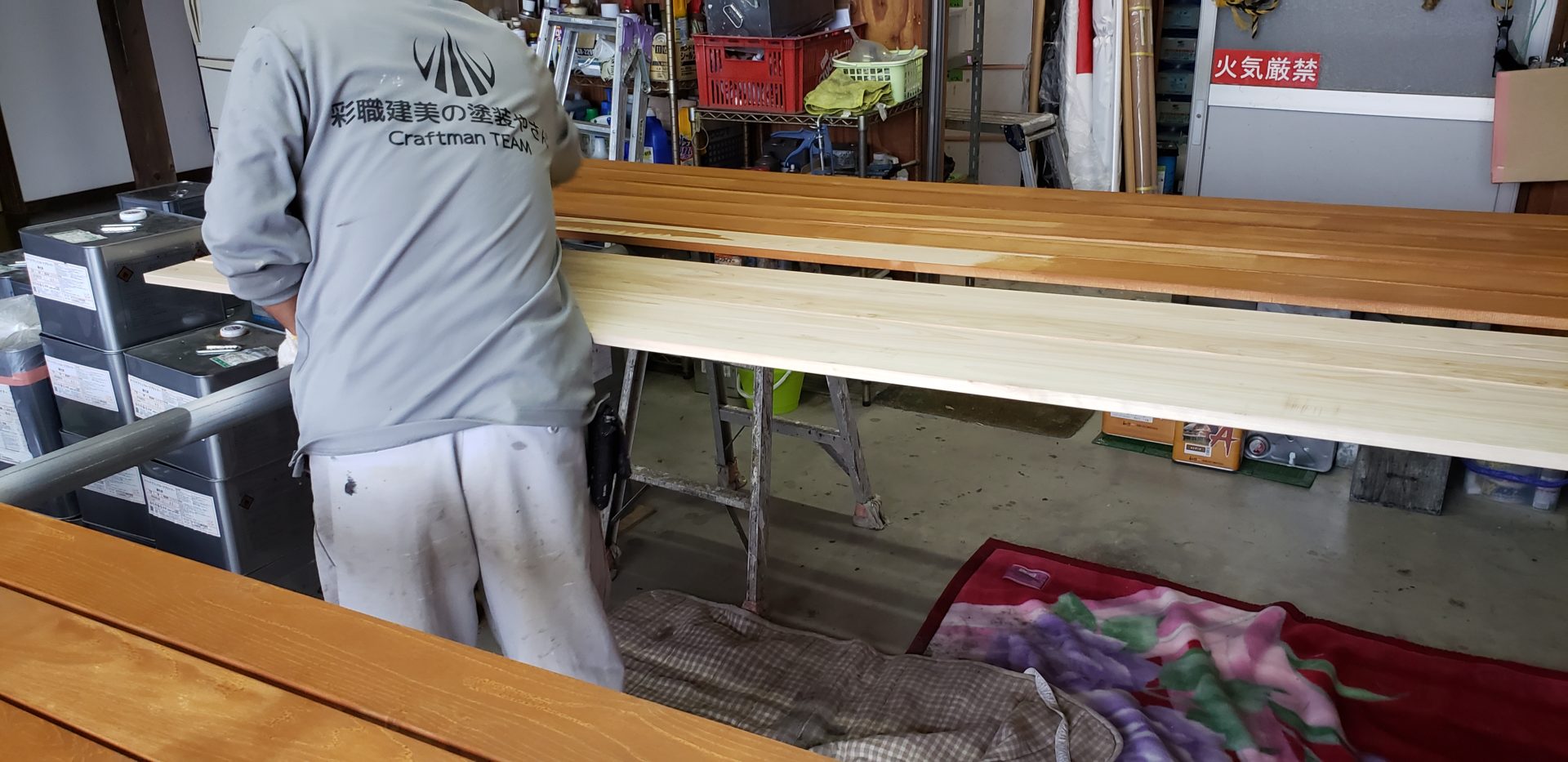 本日は、雨で外での作業ができないので、事務所にある塗装ブースで作業しました。