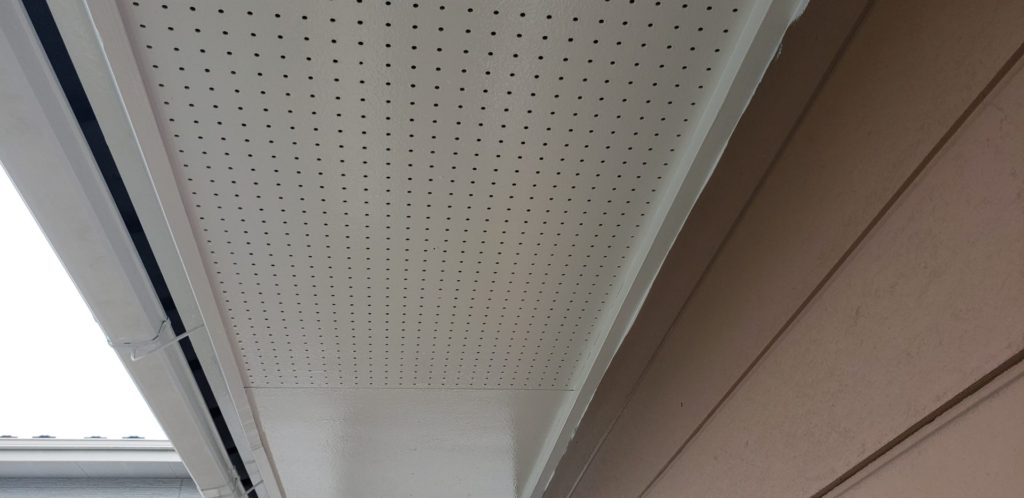 天井は仕上がりで破風・雨樋は中塗が完了しました。
