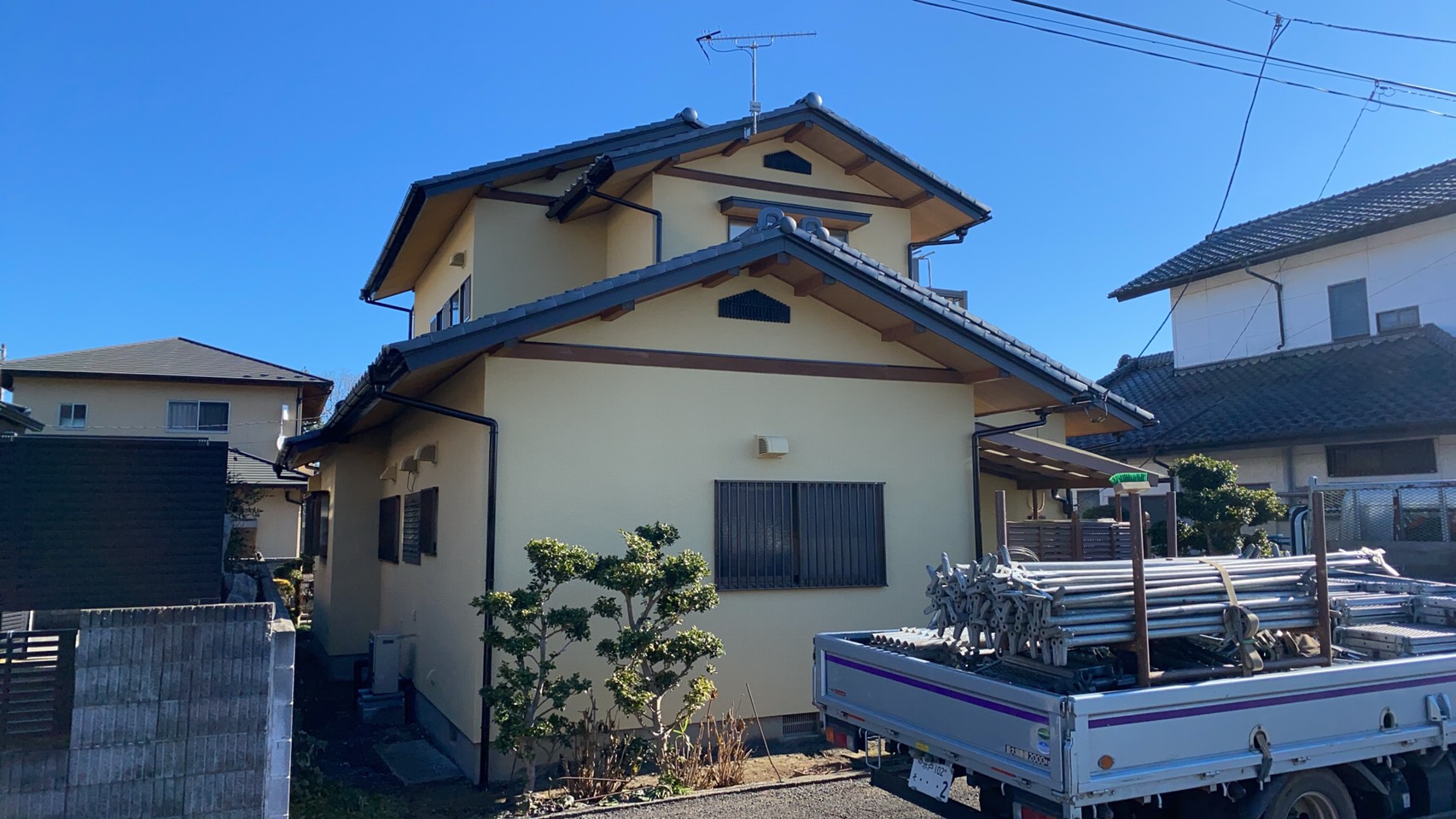 常陸大宮市Y様邸塗り替え工事足場解体です。