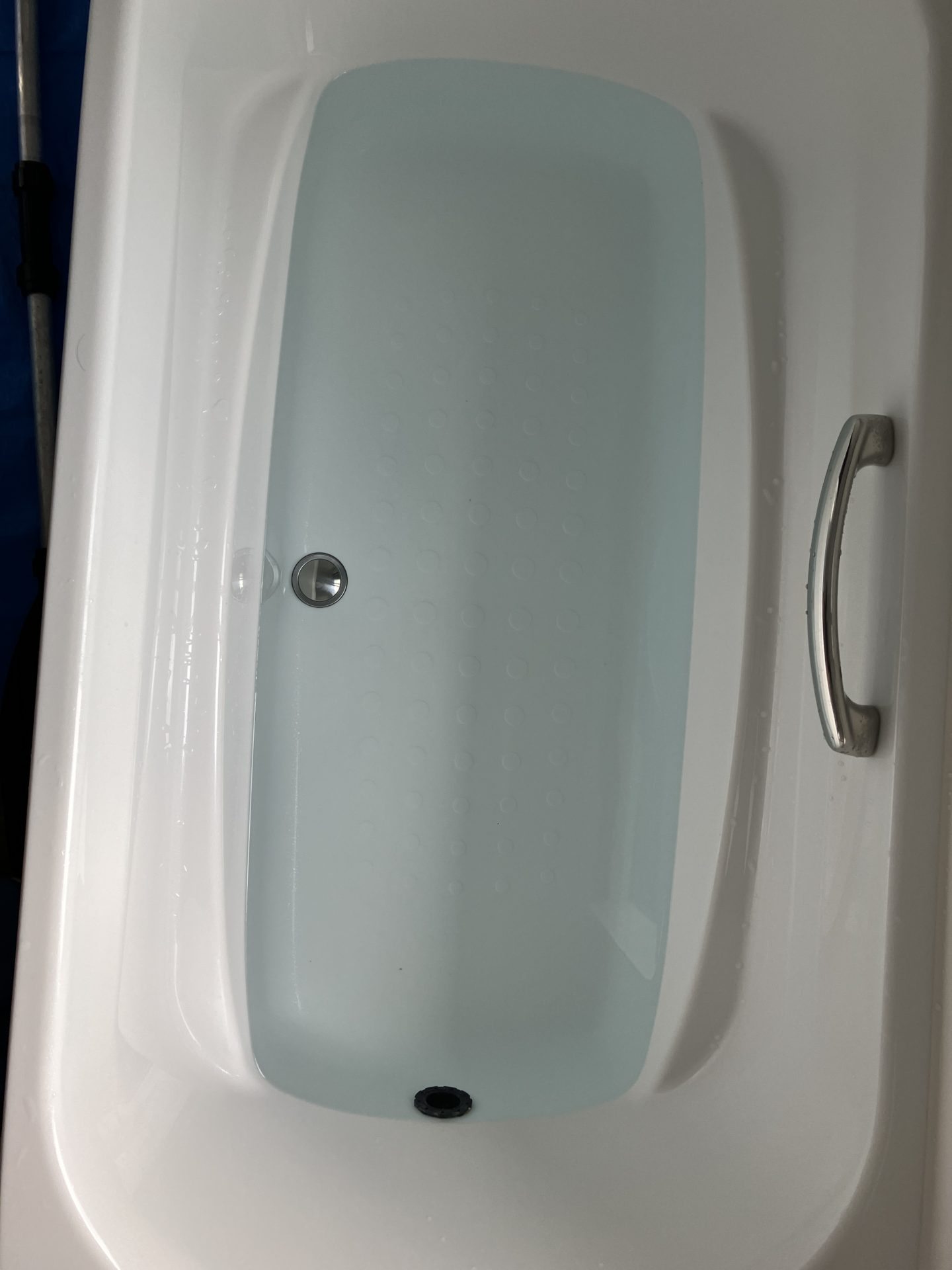 早速ですがお湯張りの様子です。お風呂リフォームから5年程度と言うことで全体的にはキレイに見られました。出てきたお湯には少しのゴミが見受けられた程度です(よく見ないとわからない程度)。