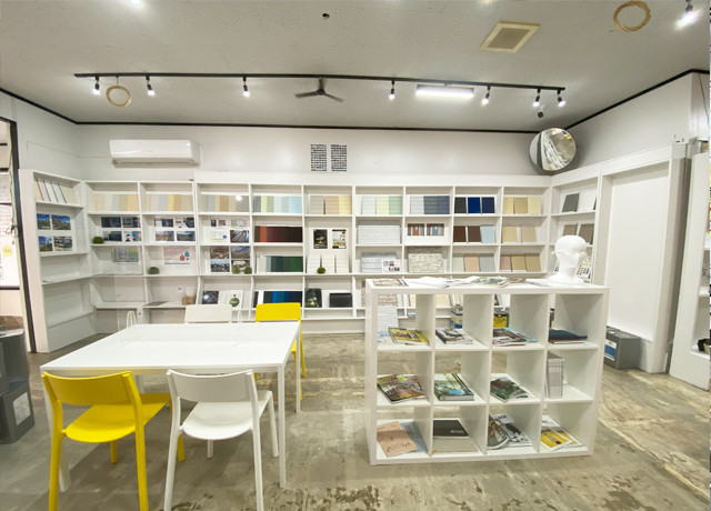 予約なしで自由にご覧いただける、塗装複合ショールーム。施工イメージ写真や各種カタログなどを取り揃えています。スタッフからのお声がけは一切ありません。必要な方のみ、ご予約ください。